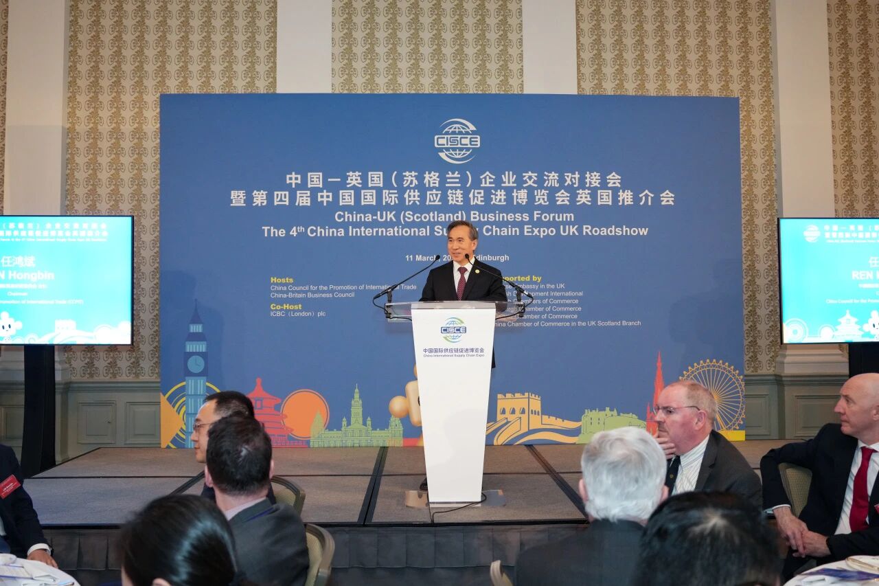 中国贸促会与英中贸易协会共同举办中国—英国(苏格兰)企业交流对接会,双方企业聚焦人工智能、先进制造、清洁能源等深入交流,达成多项成果。