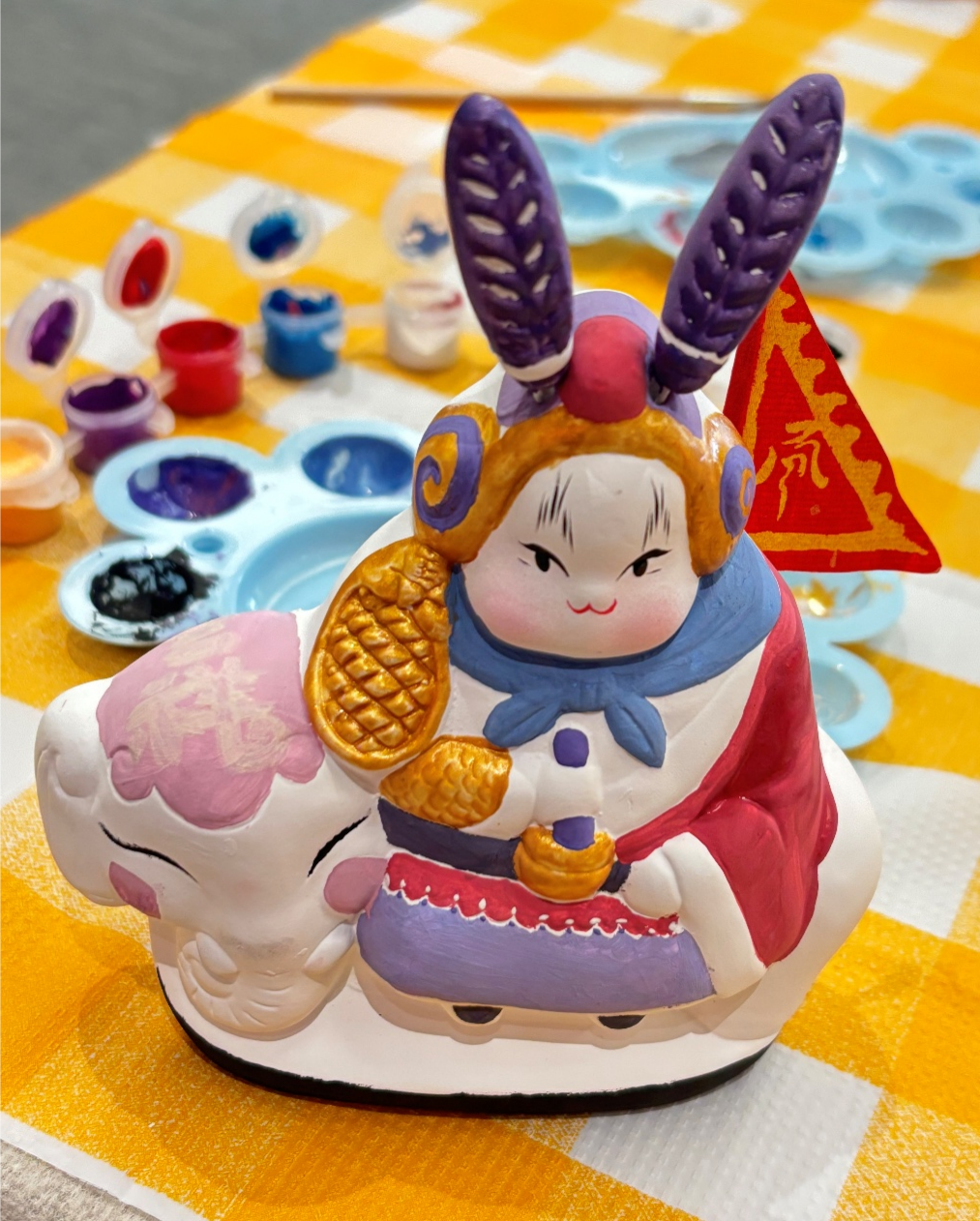 活动现场,“家国团圆”氛围浓厚,欢声笑语不断。主持人结合双节背景,既介绍了兔爷作为老北京中秋吉祥物的文化内涵,也提及国庆佳节的意义。员工们将对祖国大家、个人小家的美好祝福都融入创意当中,以“中国红”为主色调,为兔爷搭配五彩新衣,为“坐象”绘上美丽饰品,寓意“国泰民安、吉祥团圆”,将每一个石膏兔爷都变成了独一无二的纪念品。